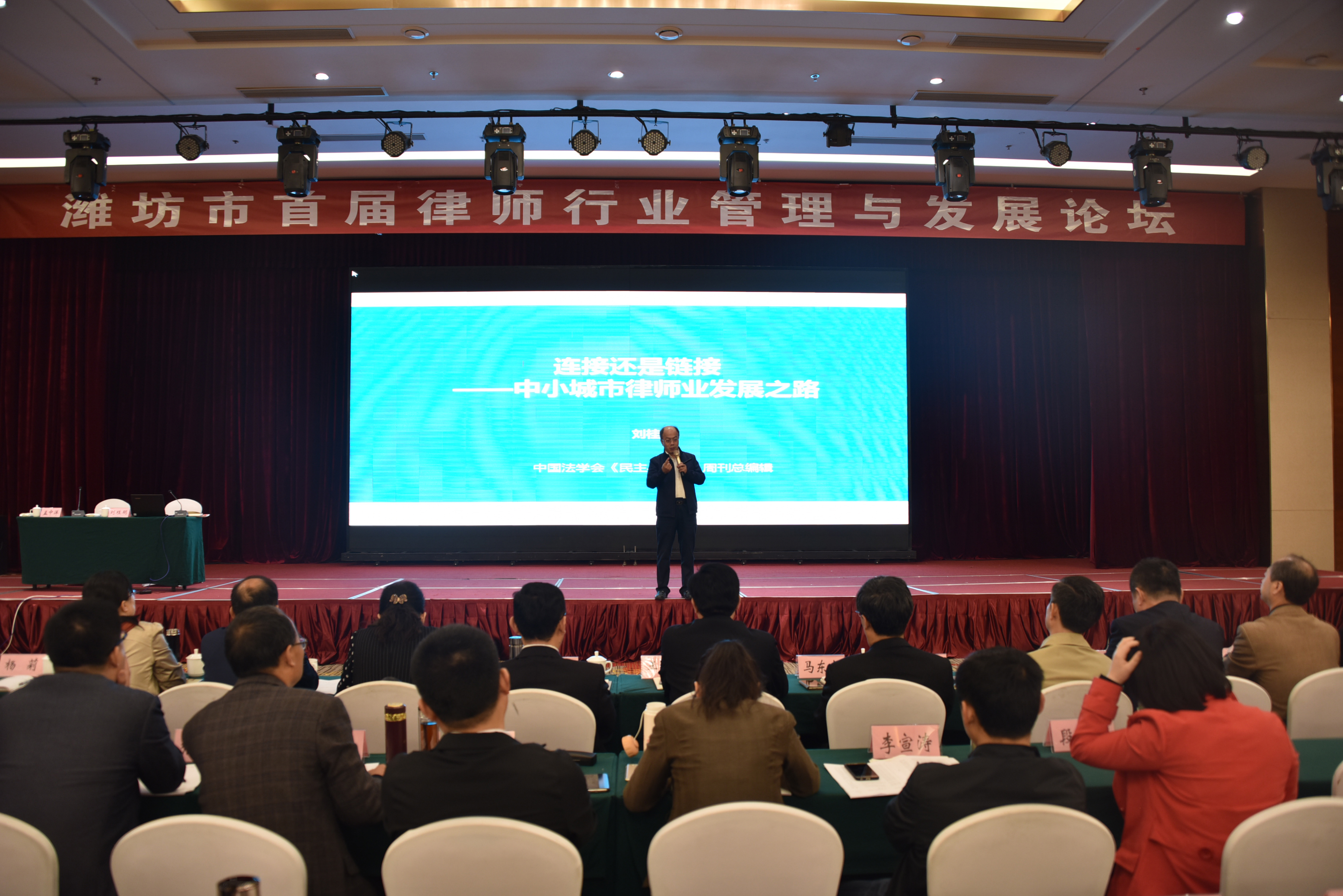 4月20日至21日,由潍坊市司法局、800彩票共同举办的全市首届律师行业管理与发展论坛在潍坊金宝瑞纳酒店举行。论坛主题是认真学习贯彻习近平总书记系列讲话精神,落实中央、省委、市委和业务上级对律师工作的部署要求,抓住律师管理、律所管理、律师行业管理这一事关律师业整体发展的关键要素,深入研讨潍坊律师业健康、有序、高质量发展之路,推动潍坊律师业更好地为全市经济社会发展、为人民群众和全市法治建设服务。