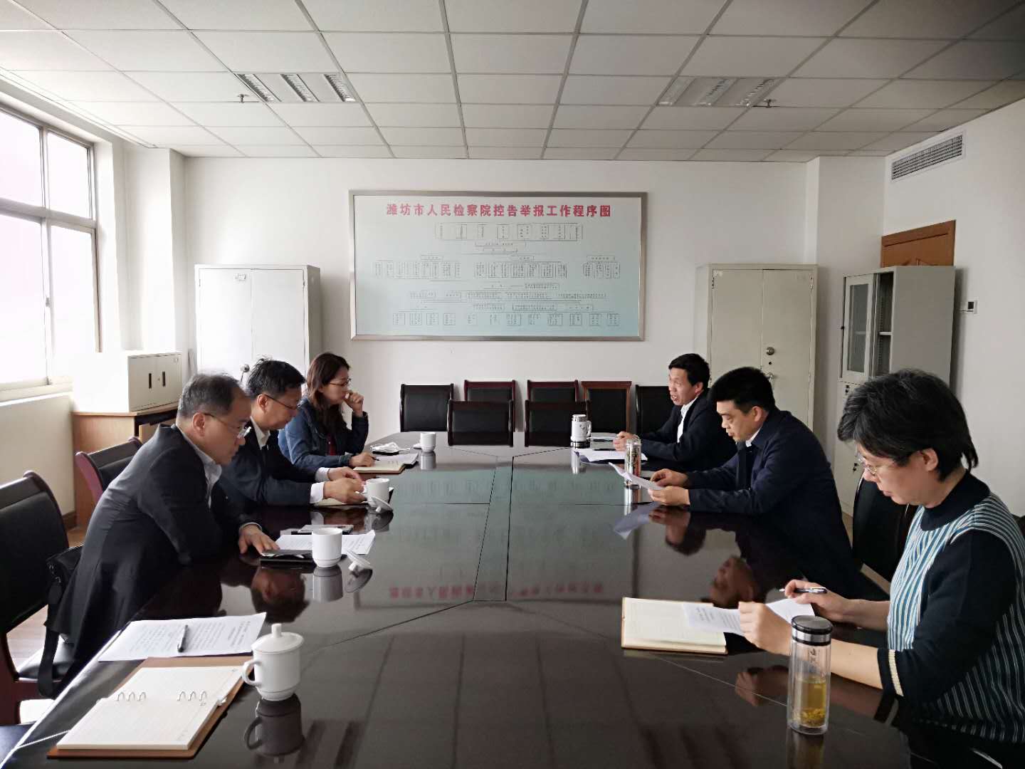 5月7日,潍坊市司法局、市律师协会与市人民检察院召开保障律师执业权利座谈会。市律师协会会长马东宁、副会长方强,市司法局律师工作科副科长赵晓云,市人民检察院第八检察部负责人周长军、副主任刘晓红、一级主任科员李景香出席会议。