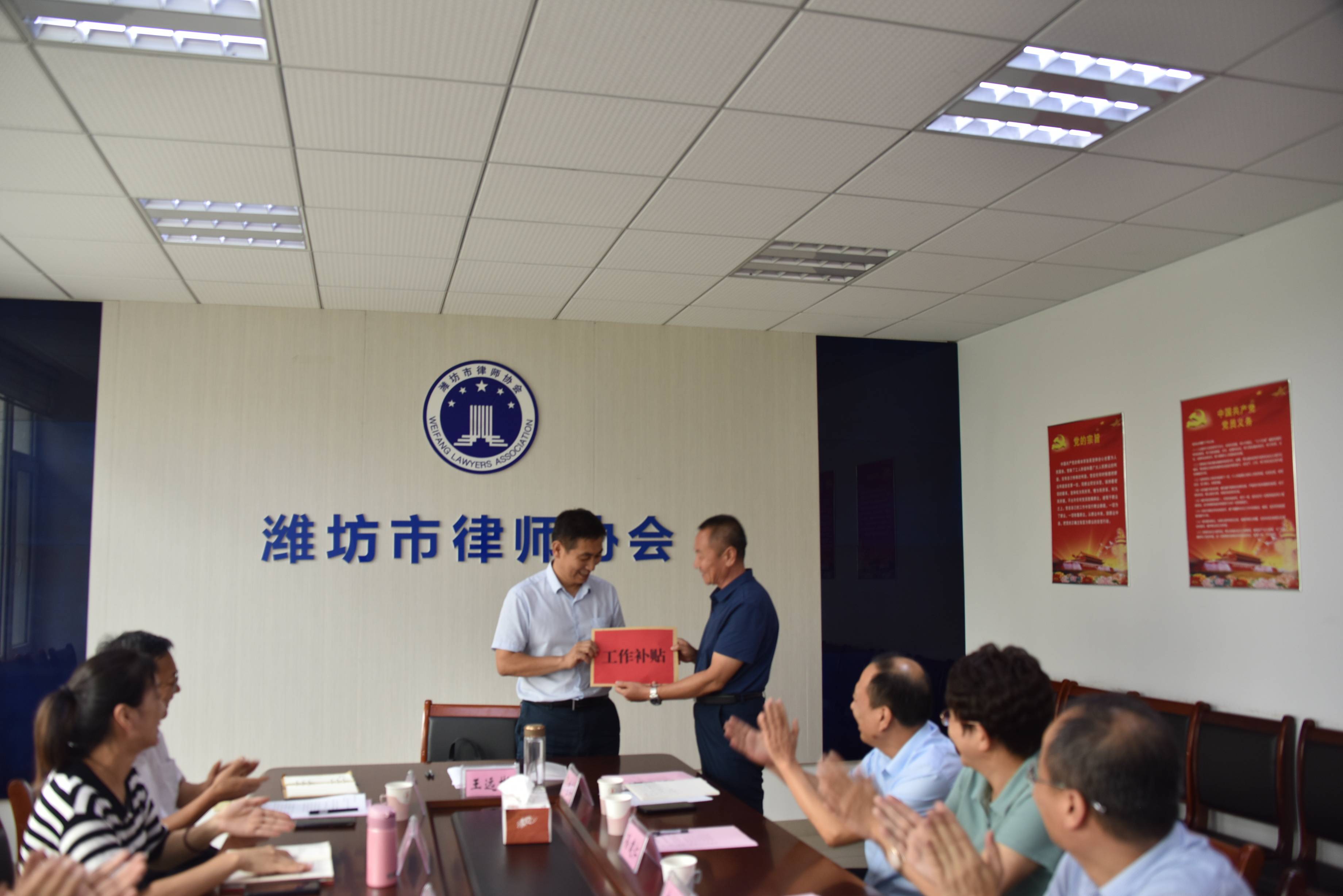 会上,800彩票会长马东宁介绍了自2012年来我市开展法律援助工作概况。潍坊市司法局党委委员、政治部主任、市律师行业党委书记王远彬向马忠喜律师发放工作补贴。马忠喜律师对2021年援助三都水族自治县工作情况进行汇报,并对参加2022年度志愿者活动作表态发言。与会人员也就马忠喜律师志愿服务表达了自己的祝愿和支持。