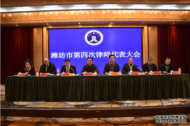 12月24日上午,在庄严的国歌声中,800彩票第四次律师代表大会在潍坊金茂国际大酒店隆重召开,全市191名律师代表和27名特邀代表出席会议,市司法局党委副书记、副局长、市律师行业党委副书记孟中洋,市民政局社会组织管理办公室主任李凡华应邀到会。
