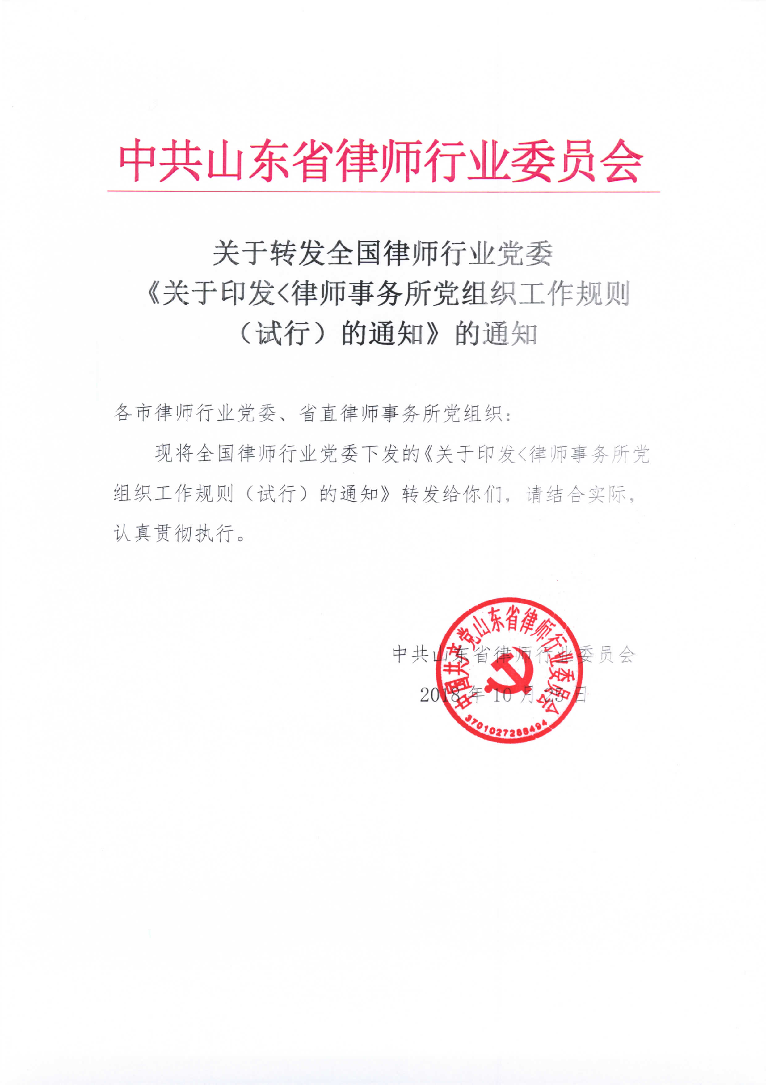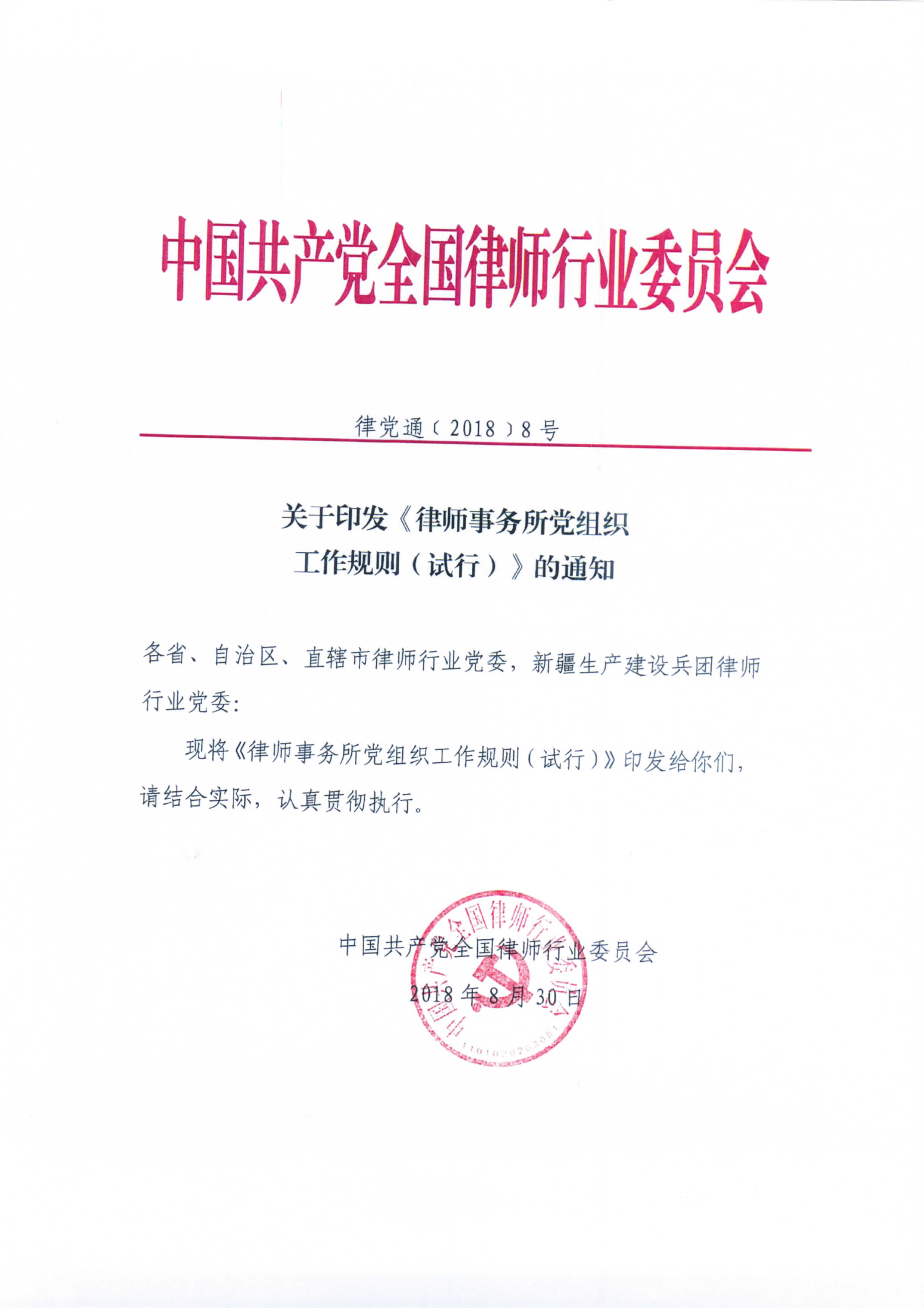 关于转发全国律师行业党委《关于印发律师事务所党组织工作规则(试行)的通知》的通知附件