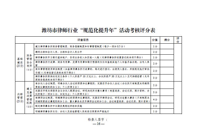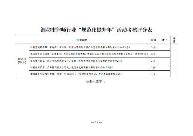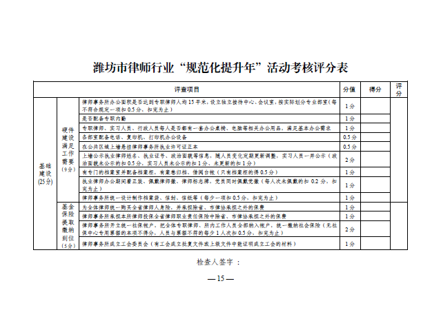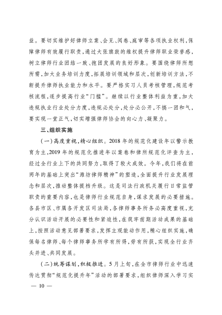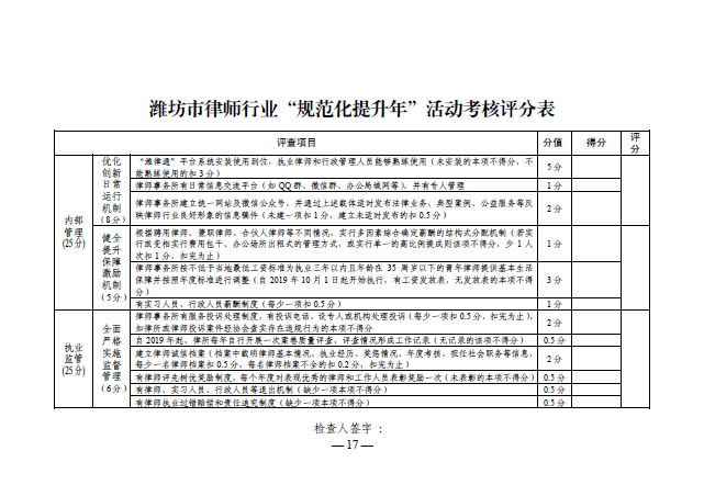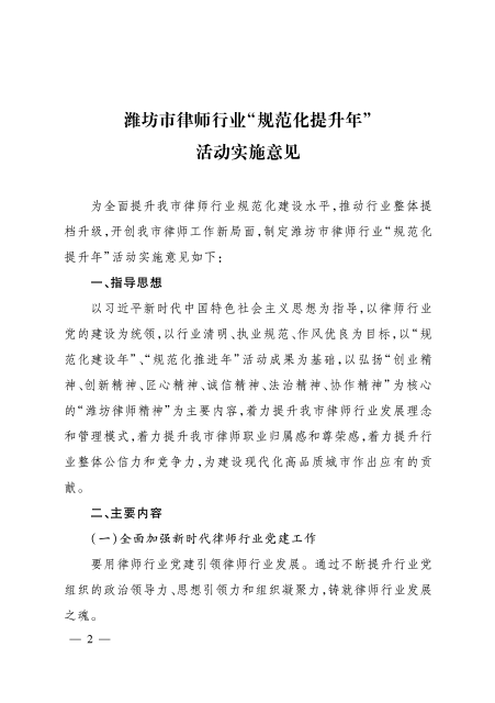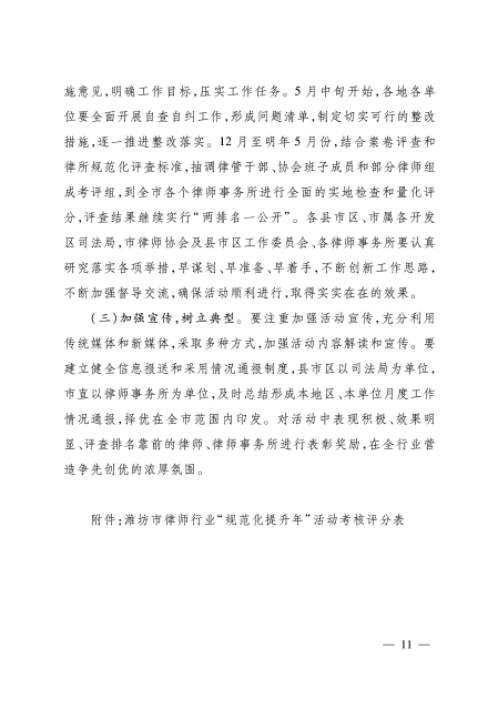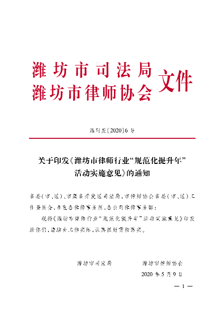 关于印发《潍坊市律师行业“规范化提升年”活动实施意见》的通知